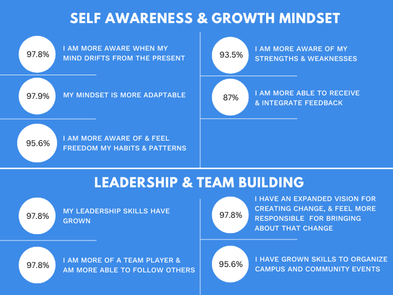 Studija sa nasumičnim odabirom ispitanika koju su proveli znanstvenici sa Sveučilišta Yale procijenila je učinak SKY programa i dva druga programa - Program smanjenja stresa temeljen na svjesnosti i Program emocionalne inteligencije - na dobrobit studenata. U usporedbi s kontrolnom grupom Program smanjenje stresa temeljen na svjesnosti nije pokazao nikakvo poboljšanje. Program emocionalne inteligencija je pokazao jedno poboljšanje (svjesnost), a najbolje rezultate imao je SKY program i to u 6 područja: stres, depresija, mentalno zdravlje, svjesnost, pozitivne emocije i društvena povezanost.